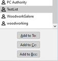 I used to have Address book on my menu bar and could right click on a mailing list and send a BCC email to all. In 102.3, the address book is now in a tab to the left of the window, and I cannot click to open an email to all. I cannot select, and copy all addresses in the list and copy to a new mail BCC field.. How can I now send an email to all in a mailing list? It used to be so simple! John