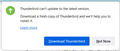 Thunderbird can't update to the latest version. Download a fresh copy of Thunderbird and we’ll help you to install it.