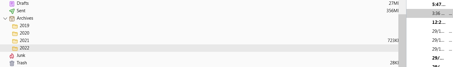 While that solution works for the fields in the email pane as well as the Name & Total fields in the Folders pane it does not work for the Size field in the Folders pane. I've tried. The double arrow does not appear for the Size field at the right hand edge of the Folders pane.