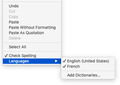 I have 2 dictionary in TB. French and English Since 102, it seems that I can select multiple languages - See uploaded images When multiple are selected, the spell check is confused