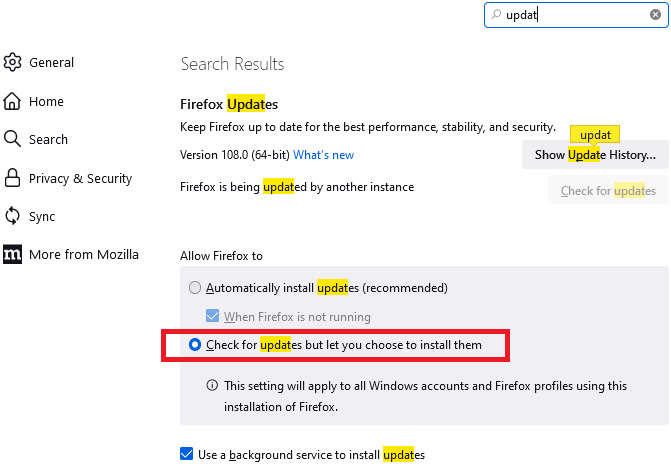 About 6 weeks or so ago, I began finding messages intermittently on my screen when I got up in the morning. It would state that Firefox had crashed and needed to be restarted or closed. It would transmit error information first in either case. Firefox has sent updates a few times since, and if I had the browser closed it would update upon being opened.