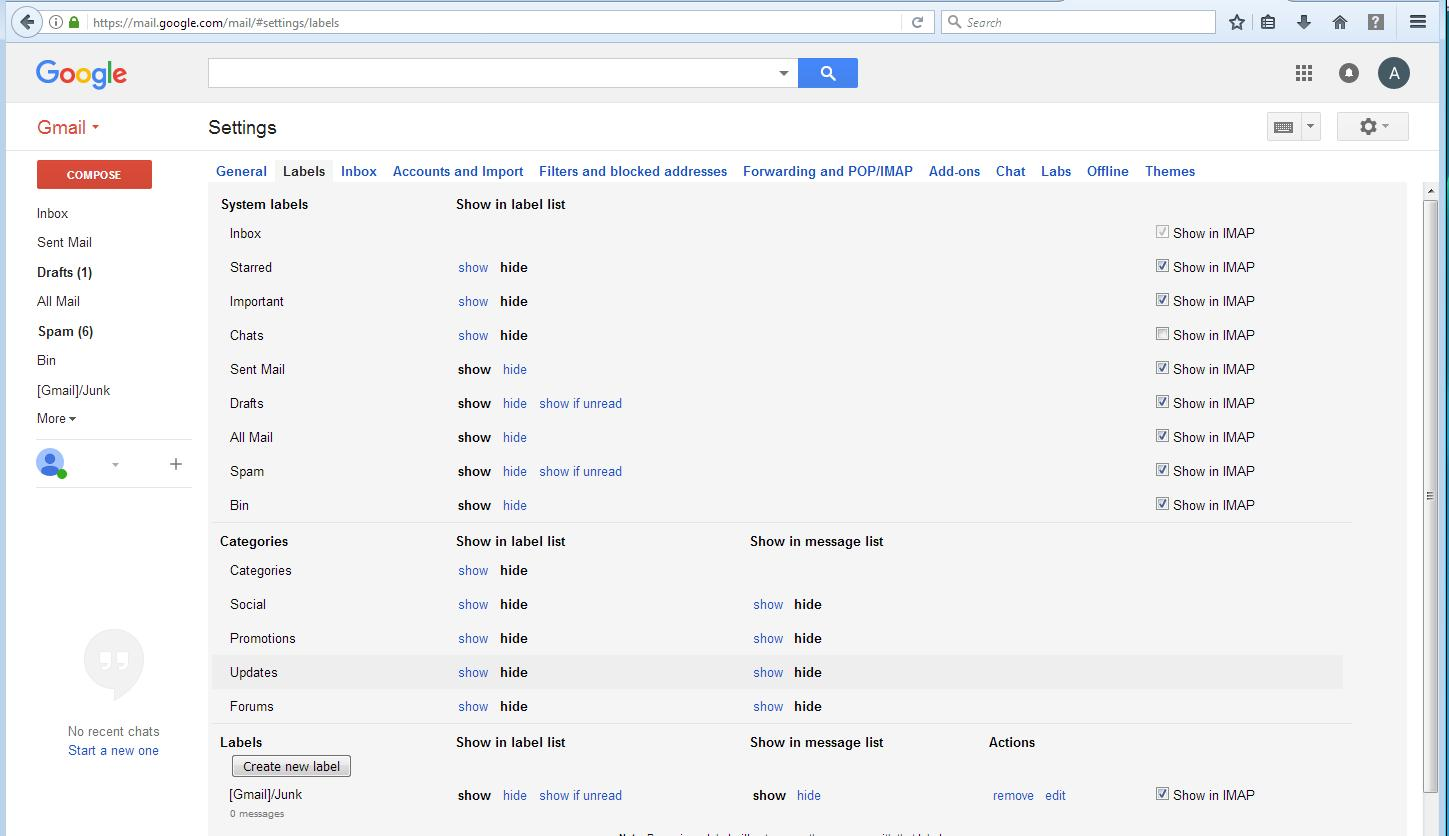 - See image below. Bin is under 'System Labels' and 'Show in imap' is selected.