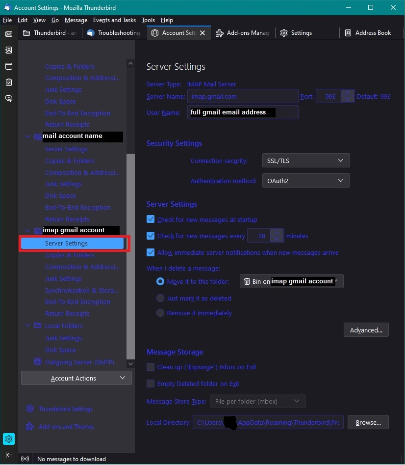 I tried removing and adding the account a few times in Thunderbird, but it hasn't solved the issue. I tried disabling and enabling IMAP on the Gmail side and nothing changes.