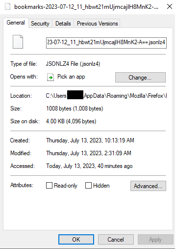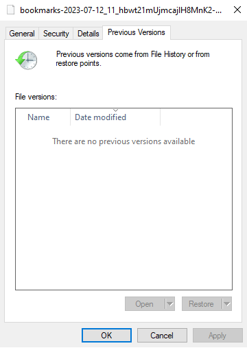 I've tried to go to the bookmark and restore it to a previous version but it doesn't appear to have one.