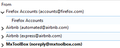 Attached screen shows expanded thread "Firefox Accounts (accounts@firefox.com" as the first entry because its message is the latest. Followed by "Airbnb (automated@airbnb.com" and when I expand it, I find all messages from this sender. Etc...