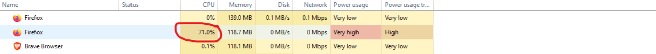 Every time I leave the browser open in the background, I come to find that it's using almost 80% of my CPU, and my fans are very loud. I don't know what this is. I deleted Google Chrome because of that, and then I used Microsoft Edge for a while. Then I figured out that it's full of bugs, and the same goes for Brave. So, I decided to give Firefox a shot, only to find out that it's just like Google Chrome. I don't have any extensions installed on my browser except for IDM (download manager). Please, can you answer me and tell me why this is happening, or should I just delete the browser and maybe try Opera?