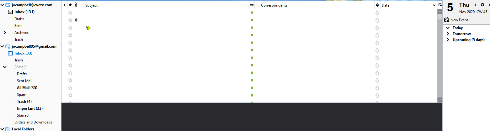 Tried compacting, deleting cache, restart, opening in safe mode, repairing, copying column setting of another account, resetting columns, could not update (latest), deleted temp files.