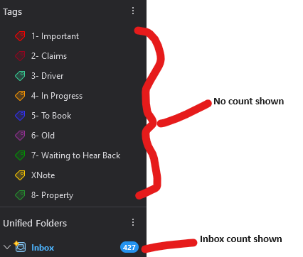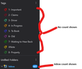 It is the tagged folders which dont display a count as shown in the arr ached image