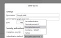 The gmail smtp server is smtp.gmail.com, 465, SSL/TLS, OAuth2, email address. Check Account Settings, Outgoing Server (SMTP) at the bottom of the left pane.