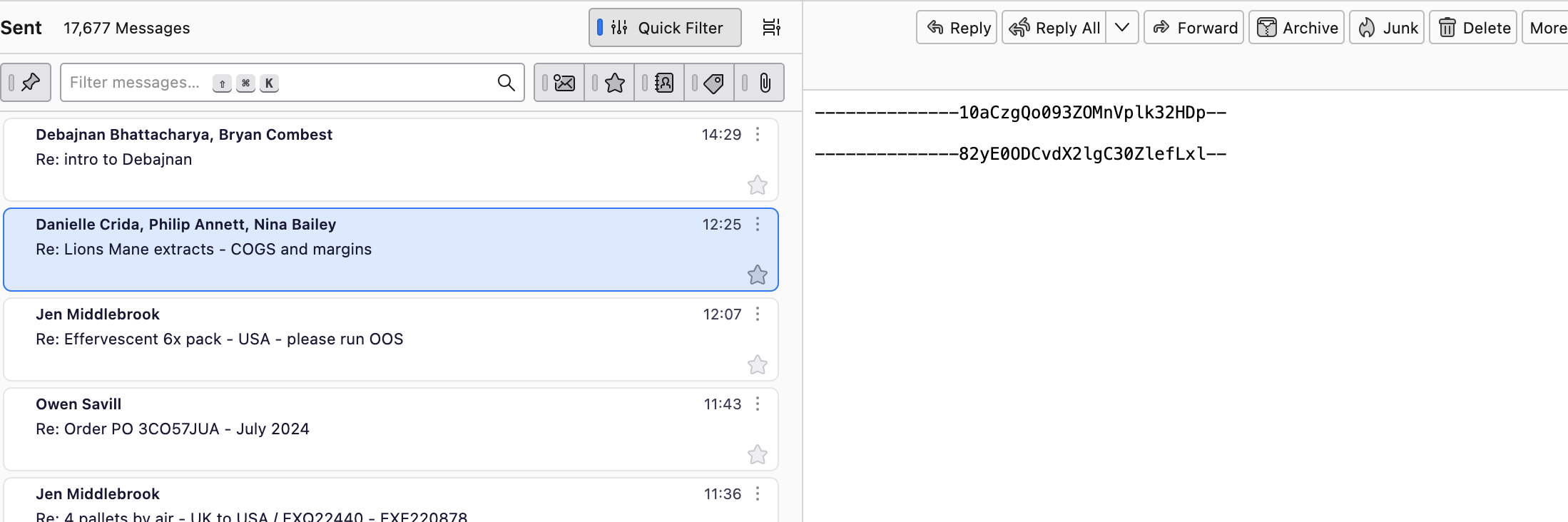 Comment from one of our users: "thunderbird is really not working right for me... it's a mess on the 'sent' folder, with either no content shown or the wrong email appearing to the wrong people...", please see image (1).png, and "on this e-mail, an image appears that I never ever have seen in my life. Can I use something else, that is not webmail? XXX mentioned she uses outlook and doesn't have issues at all", see image (2).png.