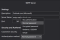 Oh did the screenshot not attach? I tried to attach a screenshot but got an error in the process; wasn't sure if it went through, but it shows my outgoing config (aside from username which I'd rather not leak; suffice to say username is something@outlook.com). Let me try attaching this screenshot again, I think the image might have been in the wrong format (I originally had it —mistakenly— as a bitmap, and after converting to PNG it looks like it attached without issue, so check below for that!)