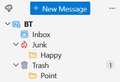 In the attachment, Inbox, Junk and Trash are all subfolders of BT. Happy is a sub-subfolder of Junk and Point is a sub-subfolder of Trash. To make Happy a subfolder of BT, you would drag it over BT and release it there.