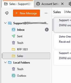 I've created the email account, and it can send and receive emails ok. In FiltaQuilla, I have checked "Save message as file." On the screen that shows my incoming emails, I have right-clicked on the account, I click on New Folder, and I created "Sales." So, Sales shows under the main entry, but there is not a physical folder named Sales. Under Tools / Message Filters, I have it set to move to Sales under the main entry.