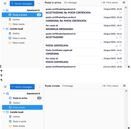 Sincronizzazione da casella PEC (Postecert): non sincronizza mail inviate