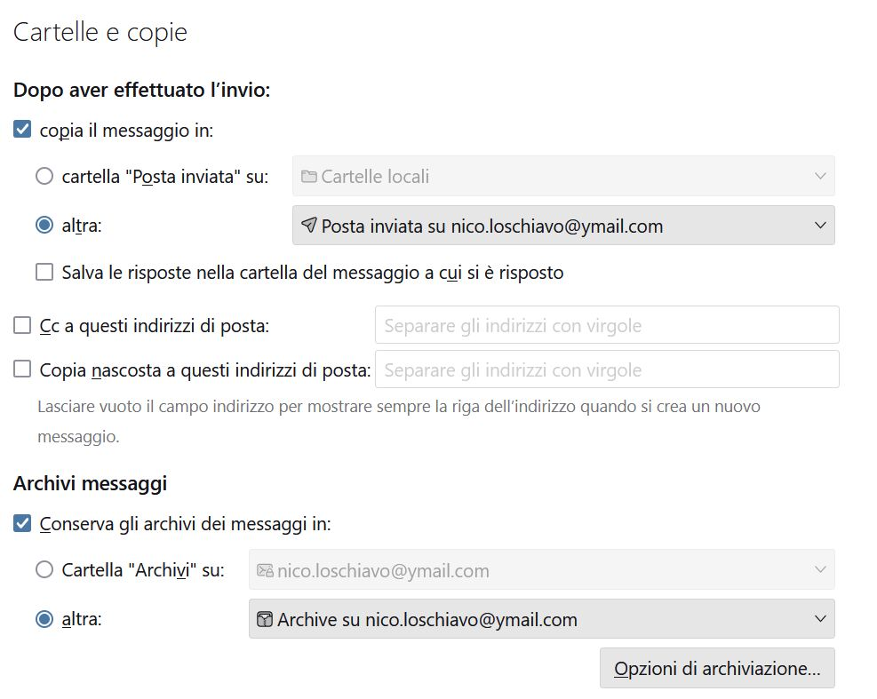 Buonasera a tutti ! Chiedo scusa per l'ignoranza. Se NON volessi salvare i msg inviati sul pc che opzione dovrei scegliere fra quelle proposte ? In poche parole, non mi importa se lo spazio a disposizione dovesse esaurirsi nella mia casella di posta sul server. Lo pulisco io. Ma non voglio salvare niente sul pc.