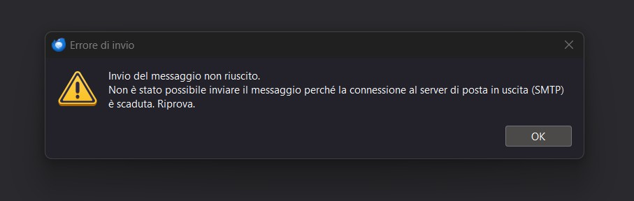 Ciao a tutti dall'ultimo aggiornamento di Thunderbird del 18/03/2025 e dall'ultimo aggiornamento di Windows del 12/03/2025, c'è un problema con il server in uscita SMTP e non posso inviare le mail. (vedi screen shot allegato) Riporto i dati: - versione Thunderbird 128.8.1 esr - S.O. Windows Home versione 24H2 - Provider mail Gmail - Account POP 3 - Nessuna estensione o componenti aggiuntivi - Antivirus Norton 360 Preciso che ho provato a disattivare l'antivirus, il firewall, la VPN e il proxi, inoltre la modalità "Risoluzione problemi" non ha dato alcuna segnalazione. Anche con questi interventi il problema rimane. Ho verificato le impostazioni dell'account e sono corrette. Grazie in anticipo a chiunque potrà aiutarmi. Giuseppe