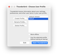 Now each time you start Thunderbird it will first open the profile manager (image) which invites you to choose between your two profiles to start with: default (old) or default-release (new).