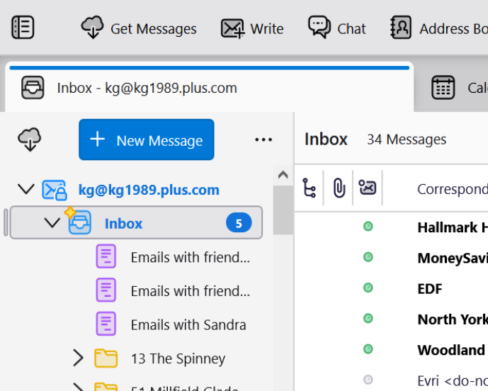 Now, in that account other folders are gone as well except INBOX. "Subscribe" doesn't fetch anything else either. I logged into that account's webmail and all the folders and emails are still intact. I tried "Get messages" on the a/c as well. But nothing.
