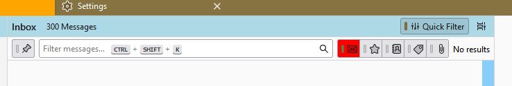 When I have the quick filter row displayed I can type something to search for. There is a row of "filters", like "unread", "tag", etc. that I can select to narrow down the set of messages to search in. But there's no indication which filter is active. The row of filters looks exactly the same whether they are active or not. As a result, it's hard to know if I'm not getting results because there aren't any or because I've clicked a filter by accident or have forgotten I did.