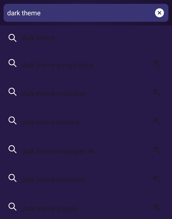Show in the attached screenshot, the suggestions when I try to search for something are black over a dark color.