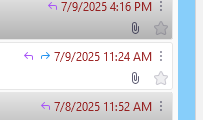 In the attached picture there is an arrow pointing left (replied) and a green one pointing right (forwarded). There's a similar display in Table View. But sometimes the arrows don't appear. In those cases, Ctrl+Shift+O to open the message in conversation to see the received and sent messages in the thread.