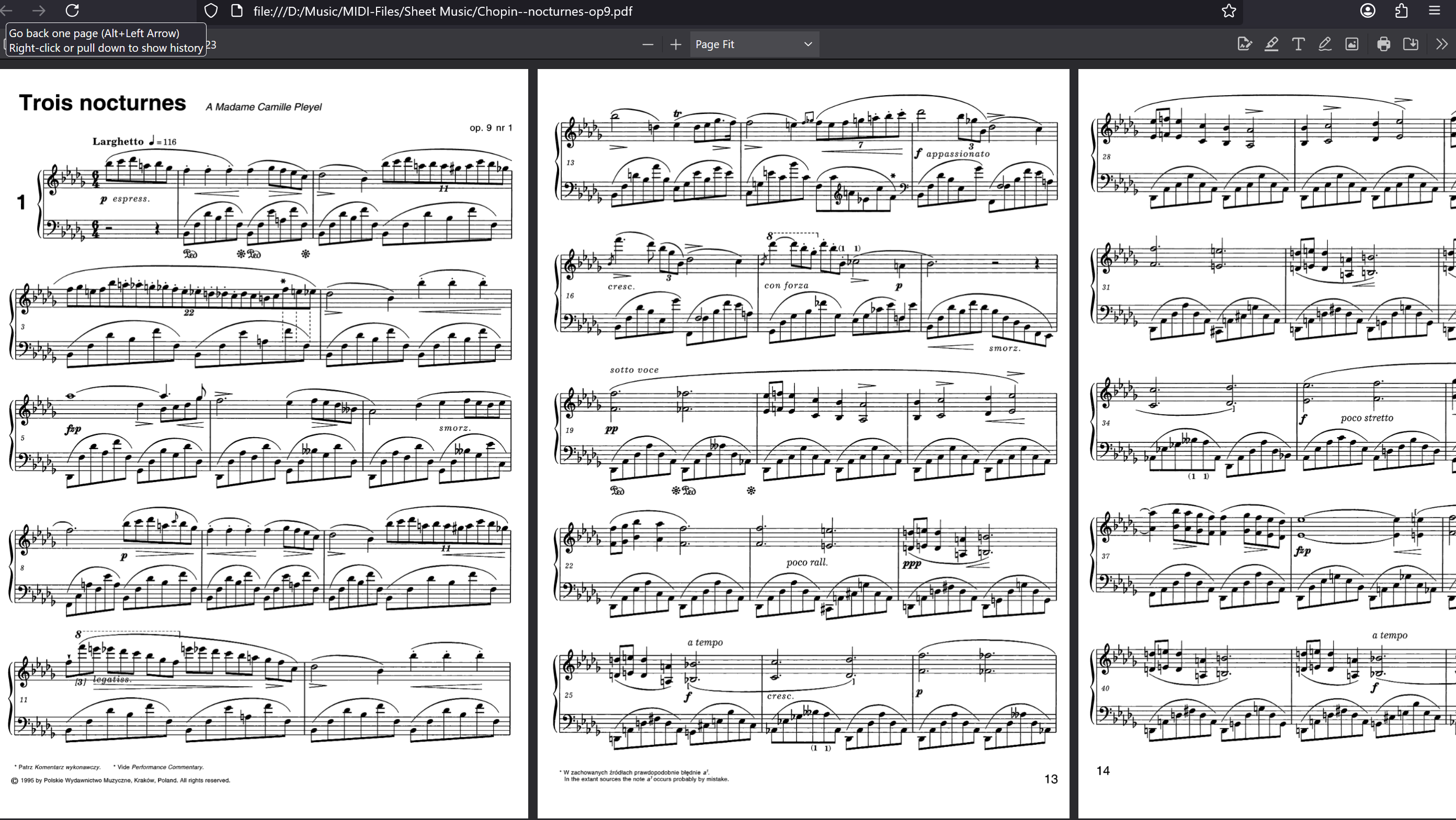 You can configure with "horizontal scrolling" and "page fit" to show your document as several pages at once, which is a fantastic way to get an electronic music score display.