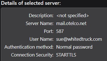 Here are the recommended SMTP server settings that are working in older versions of Thunderbird and current versions installs of Outlook.
