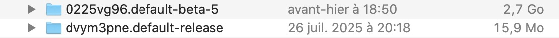 Thank you very much, Mapenzi and Matt. I am really sorry I lost you, not because your answers are useless but because I am! So do not take this as a ‘thank you but’ but as a message to make it simple and hopefully workable. In answer to my problem about local folders, I managed via the “Import” button in TB to select what I guessed was the last and correct profile (in my Library/TB/profiles folder) to reinstall the local folders…It took a bit of time (some 2700 messages) but they are all there. So now: when I open TB (141 release channel) , I first go to my Activity Monitor to kill the secondary ‘thunderbird’ process. By doing so , I prevent the CPU overload and when I quit , TB quits nicely. Fine… But now I noticed my Mac has lost about 20 Go of storage capacity…I suppose that by recovering the Local Folders I doubled the space occupied by TB! When I look at the state of the TB profiles, the whole lot is some 26 Go in size, but the useful profile (containing the local folders) is only 12.8 Go! To make things a little more confusing (for me at least), I just received notification that the new Eclipse 140 version (esr) is now available. Now, before the latest ‘release’ update (141) I was working with an ‘esr’ version (140 I think) . My question: is it a good idea to revert to esr with Eclipse and get rid of the other versions (I have the 141.0, plus the 140.1.1 esr which I don’t open). In that case, I will rebuild a new profile with the Eclipse, with the folders on the main server (my provider’s) + I will (IF THIS IS POSSIBLE) import ONLY the Local Folders contained in the current profile I use at the moment. Does this sound crazy ?