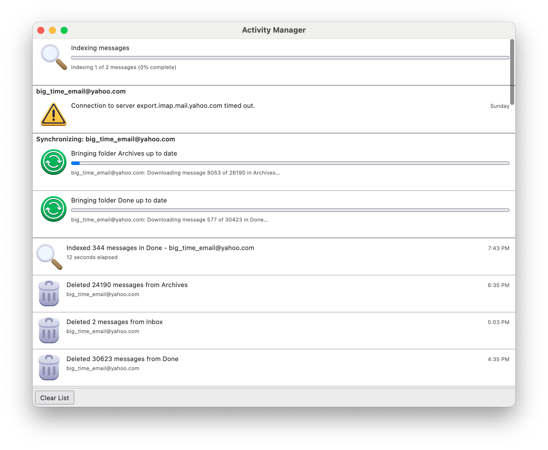 Mysterious deleting in Activity Manager and not all messages downloading (yahoo)