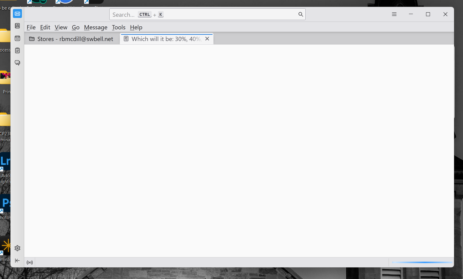 I have a single email that appears to be empty, but I cannot delete it. When I open the message in a new tab you can see that it blank. I will attach a screen capture. I've tried everything short of reload Thunderbird to delete this particular email.