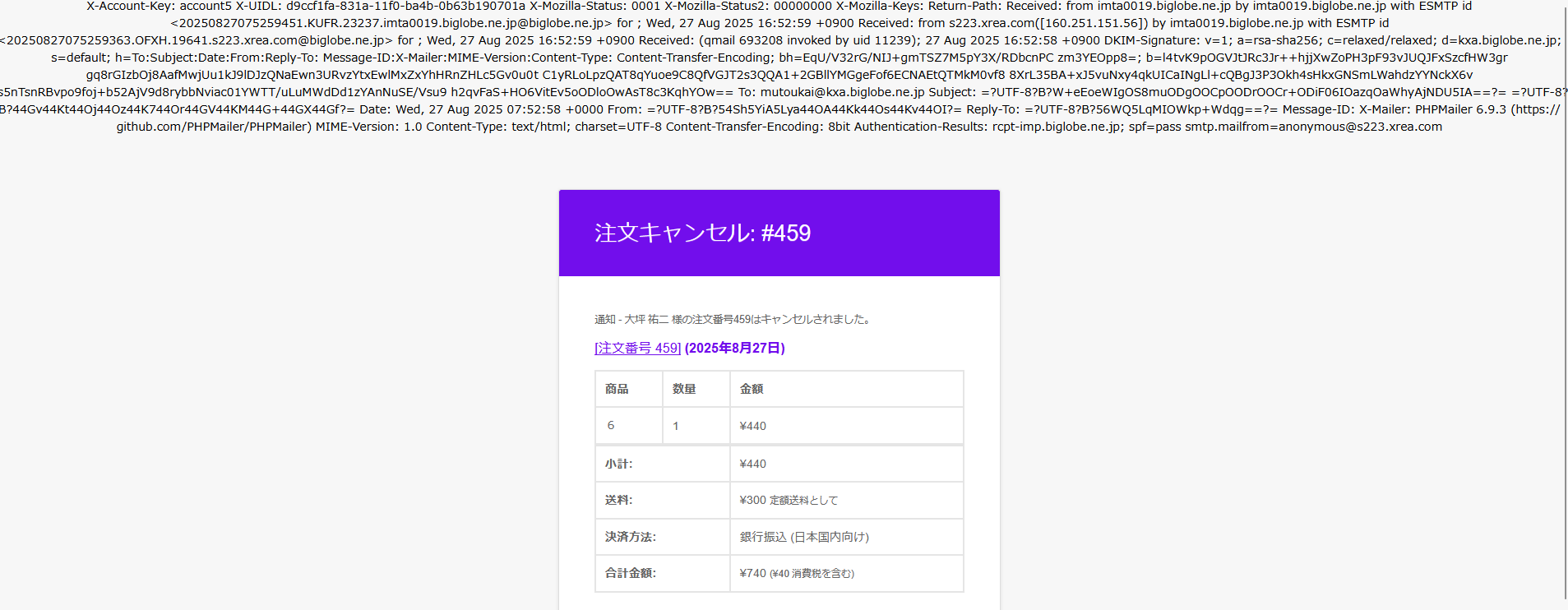 お世話になります。 一部のHTMLメールが、表示されずにソースのまま表示されてしまいます。普通のHTMLメールは上手く行くのですが、僕は個人のECサイトをwordpressで運営していて、そこからの通知メールのみどのメールも、HTMLメールがソース表示になってしまいます。ほかのタブレットやiphoneなどで見ると、これらのメールはちゃんとマークアップされて表示されます。また、このほかのサイトからのHTMLメールは異常がなく、thunderbirdでもちゃんとみることができます。 OSはwindows11 Homeで、最新版のThunderbirdを使用しています。 何かアドバイスを戴けたらさいわいです。