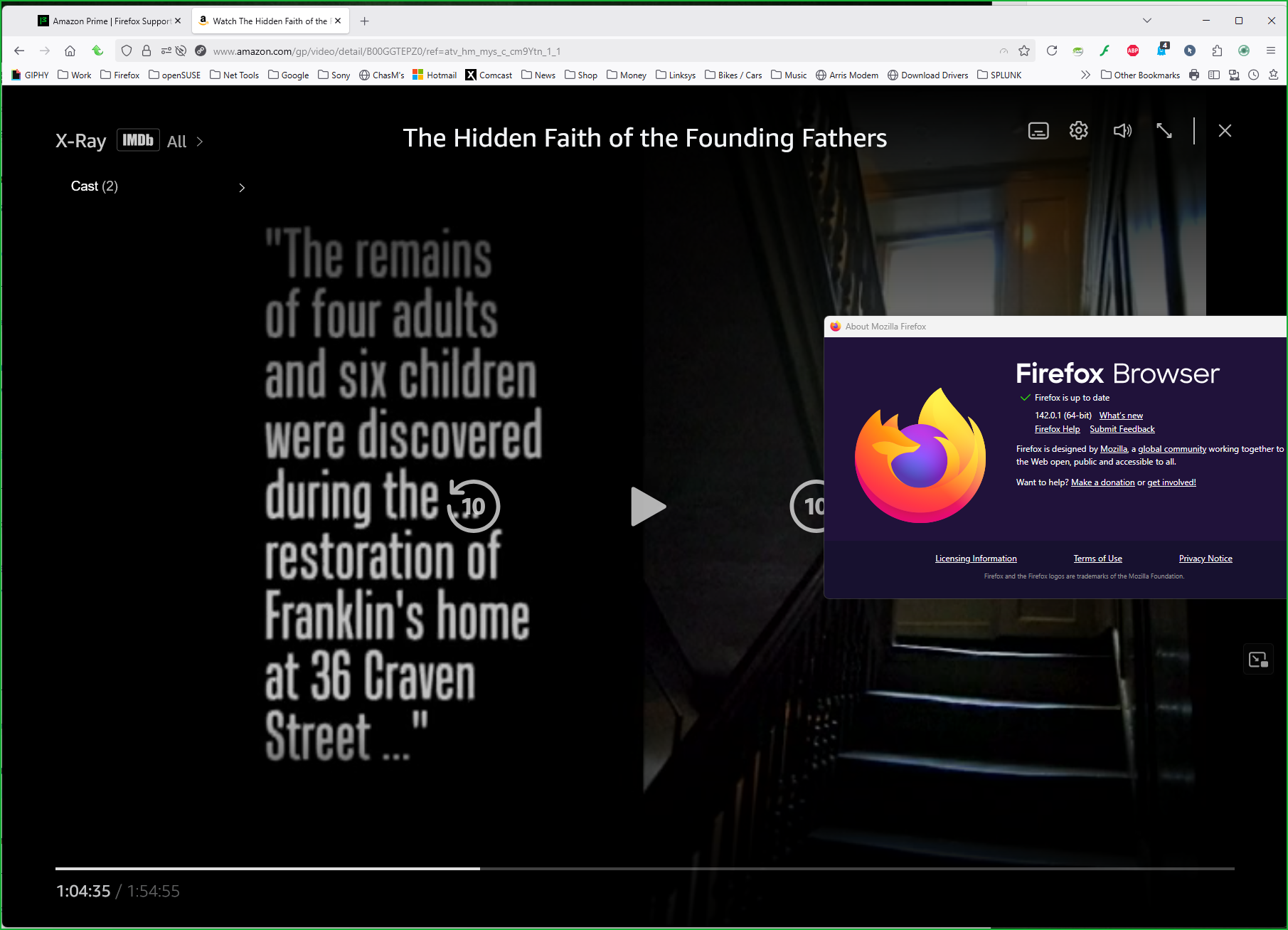 I can't watch videos on Amazon Prime. Seems to be a digital rights issue. My Firefox setting on DRM is activated.