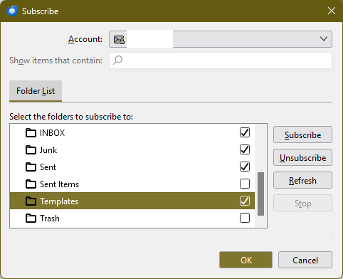 Did you right-click the folder or the account? You should see a window like the attached picture.