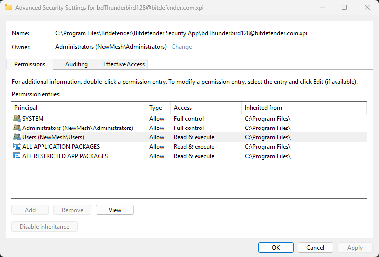 Hi Ed, In Application Binary, there is nothing related to BD (see screenshot) Regedit - I'm using Win 11. There is nothing related to BD under policies. The BD spam filter is still marking emails as possible spam even though it's not meant to be installed. Enterprise Policies is still Active and has BD stuff, but I don't seem able to delete the xpi file