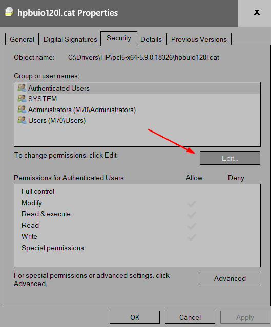 Toad-Hall said You could try right click on file and select 'Properties', select 'Security' tab Then try to alter permissions for your User Account to provide control. It wont let me - there is no Edit button The problem line also appears in Troubleshooter Mode in TB