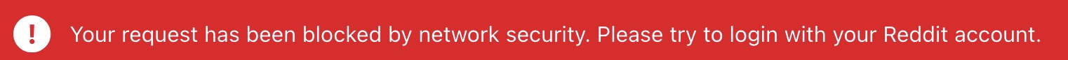 "! Your request has been blocked by network security. Please try to login with your Redit account."