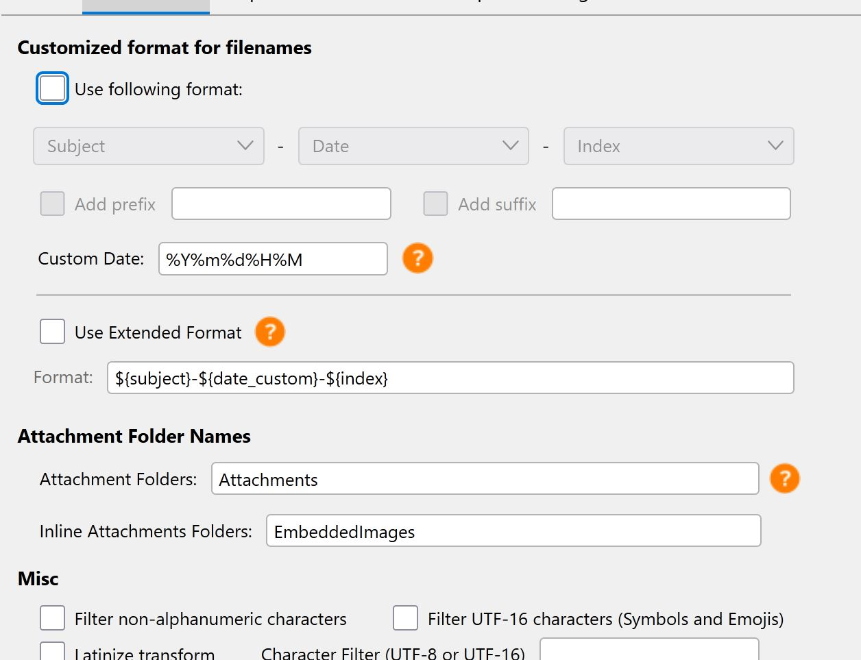 In the General settings tab, I don't see options for file type.