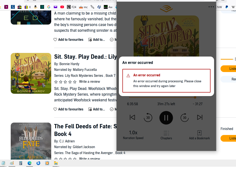 Its not working for me. The audiobook opens but when I click on play it just hangs in endless circles then an error message comes up. Screenshot below.