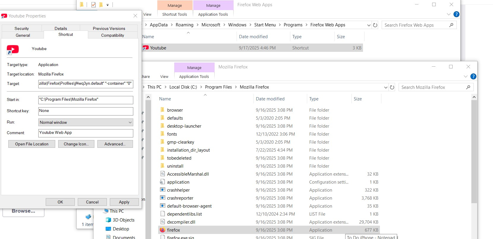 I seem to have installed the YouTube webapp on Firefox when I clicked 'add tab to taskbar' that's new in 143. It shows up as recently added program on Windows. When I go to find the origin it leads to Firefox.exe. I can't find a way to uninstall through the browser or on Windows. Does anyone know how?