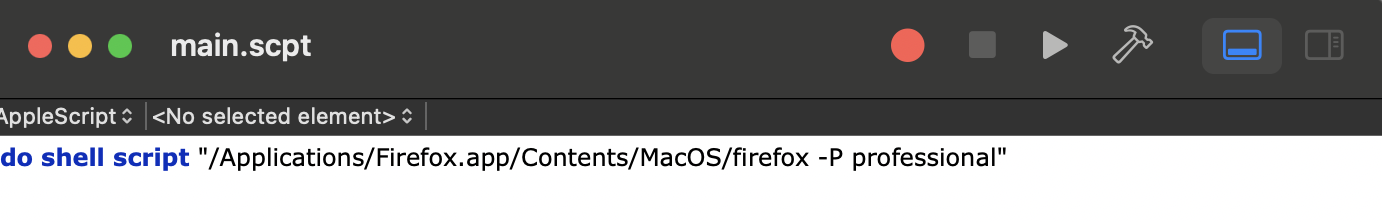 I have some custom firefox applets that acts as wrappers around the command-line functions to open firefox with specific profiles (see image 1 of applets in Applications in Finder). Each application is a simple .scpt file that runs the shell script (see image 2).