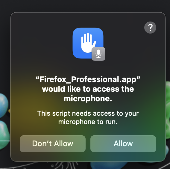 Firefox applet/wrapper for individual profiles constantly asking for system permissions on MacOS