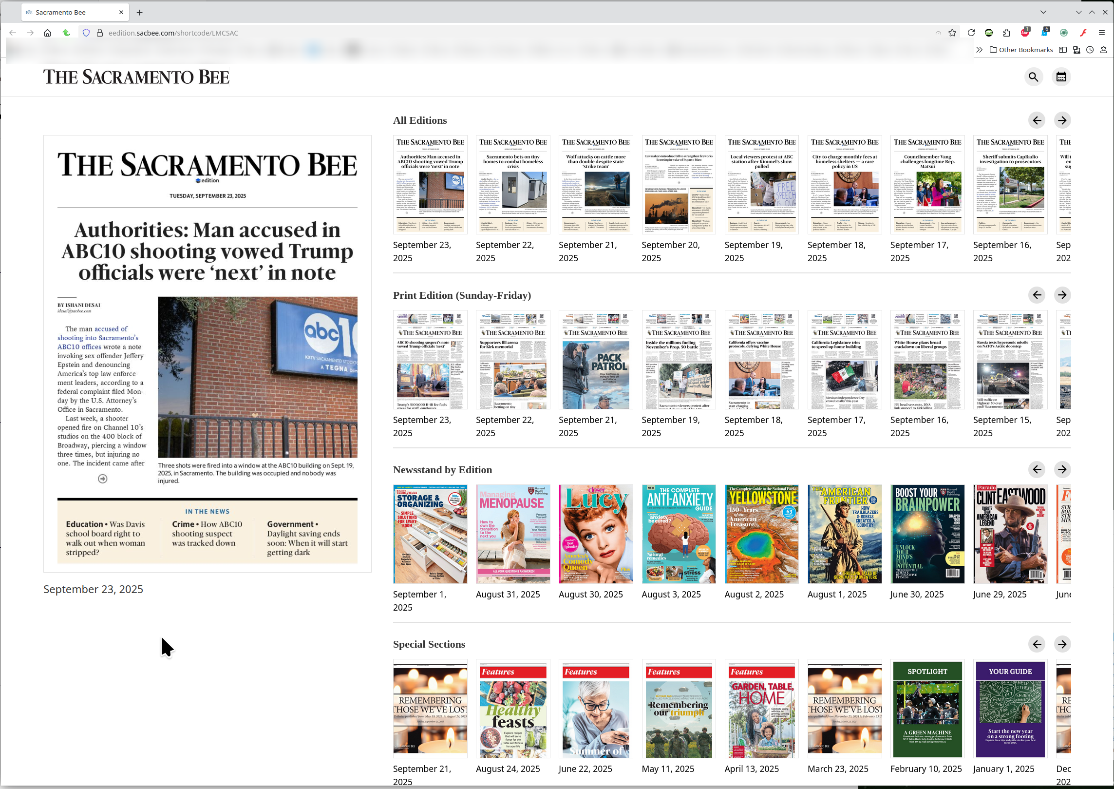 I have had a subscription to sacbee for 15 years, starting a month ago it won't open. I think it is a security issue. https://eedition.sacbee.com/shortcode/LMCSAC