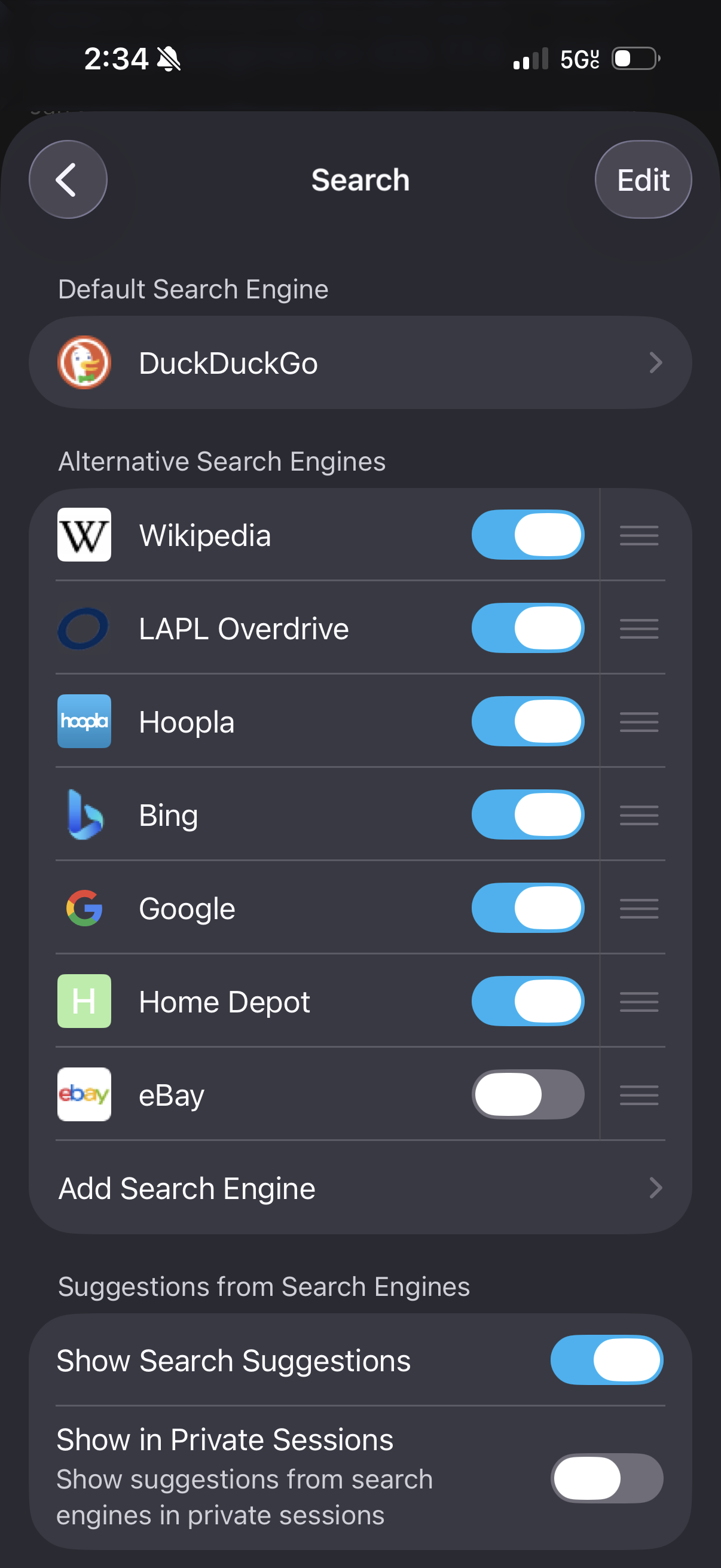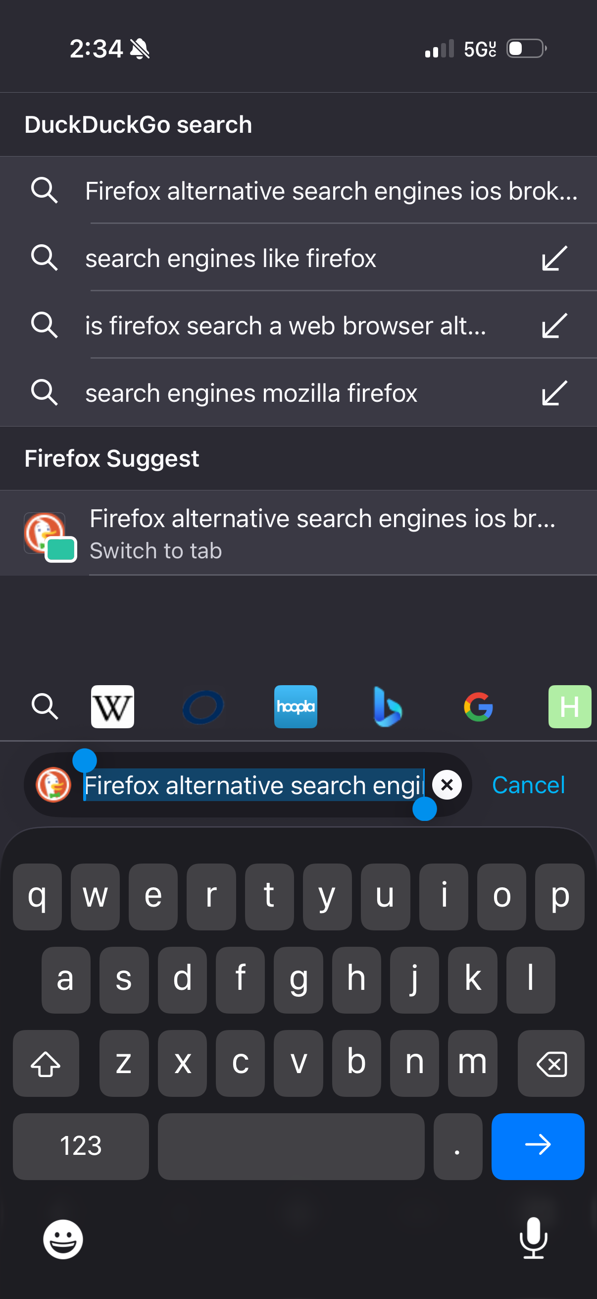 I have several search engines setup and have been using them without any problems. Now with iOS 26 and Firefox 143.0.1 (61598), I’ve lost the ability to select the engine when typing in the address bar. But I found that it works fine when I set the address bar to display on the bottom. Did iOS 26 break this?