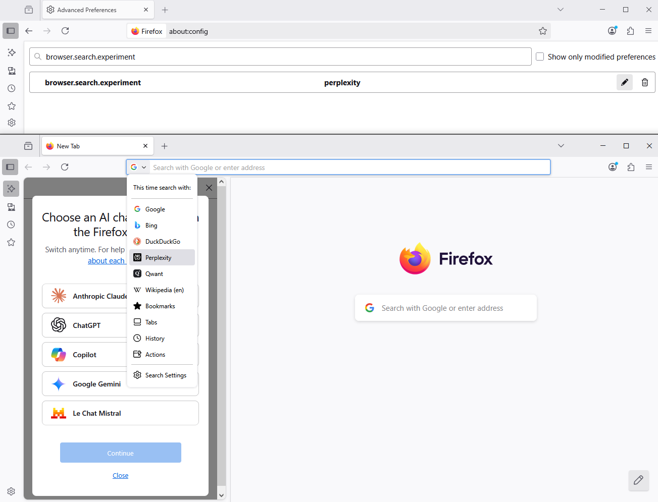 Of course, this is not the expected answer, nevertheless Take a look at https://connect.mozilla.org/t5/discussions/try-out-perplexity-ai-search-in-firefox-139/m-p/100560/highlight/true#M39051