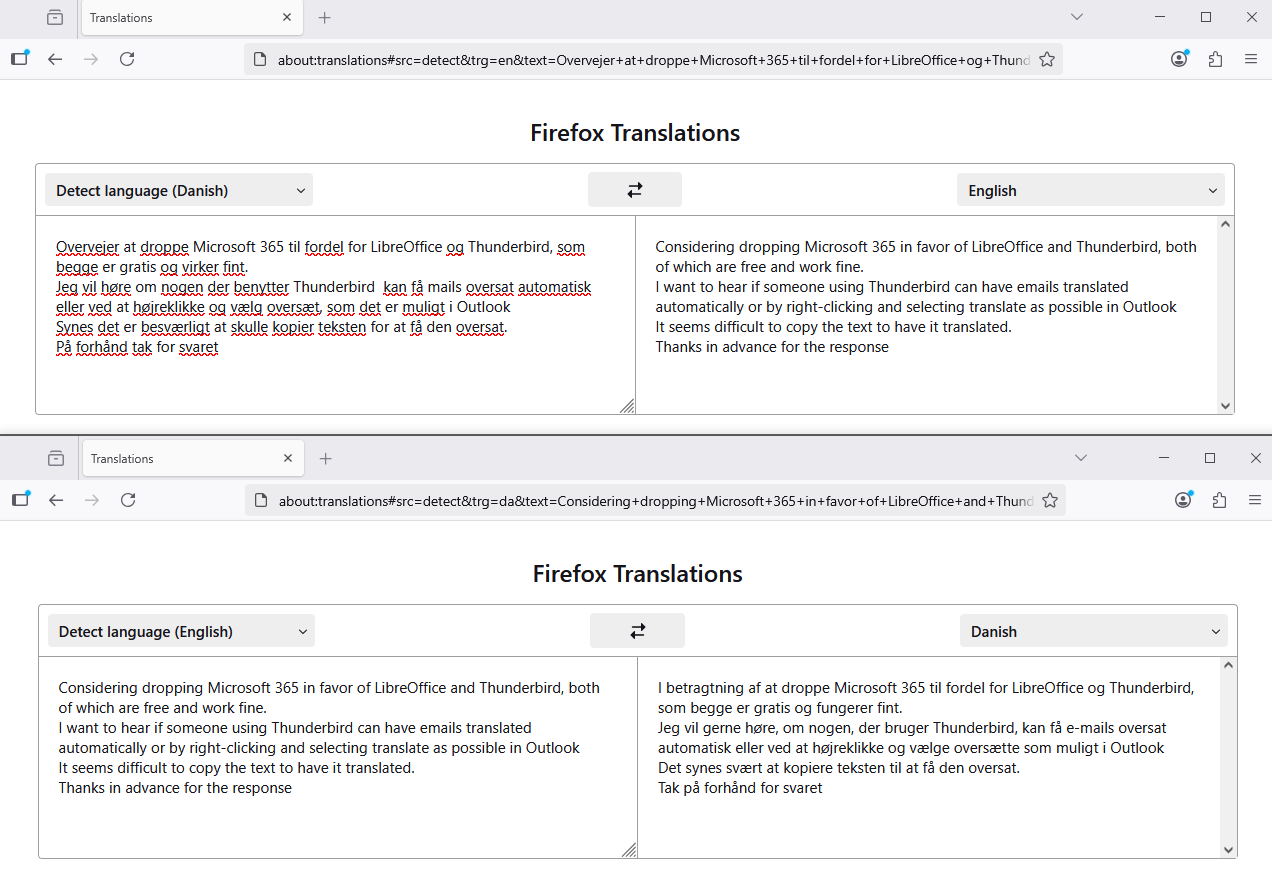 Can you translate text in email into Danish without having to copy and paste into Web Translate?