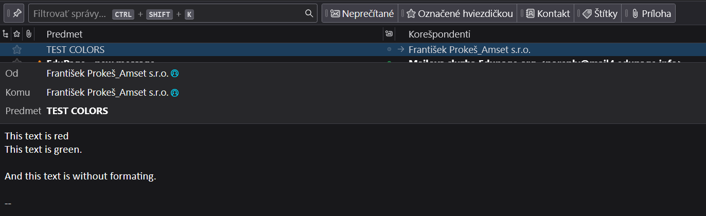 Im using Slovak version of Thunderbird 143.0.1 with dark theme.
