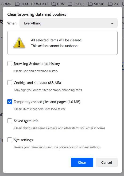- press Ctrl-Shift-Delete (Mac: Cmd-Shift-Delete)