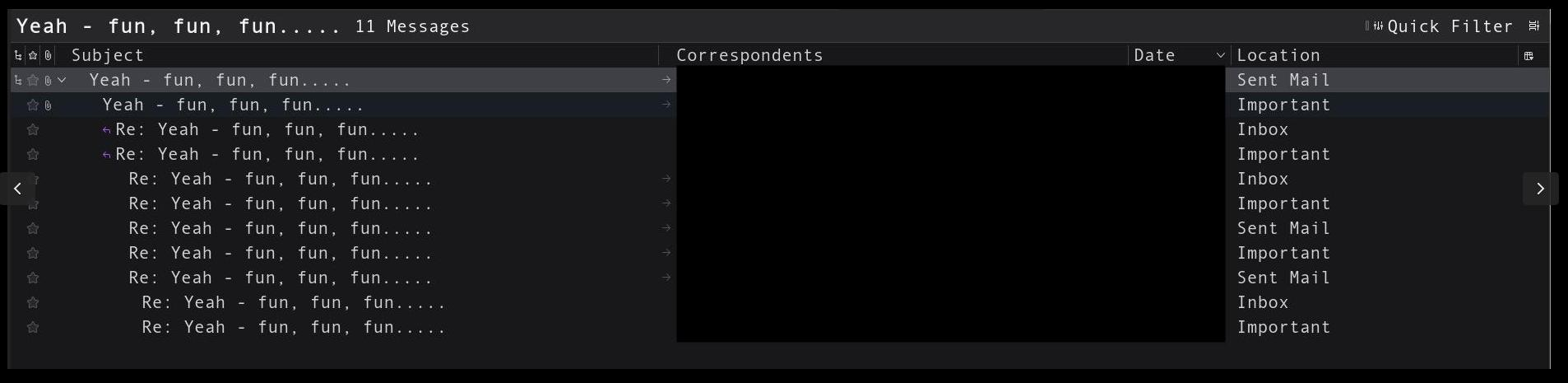 OK - when I do a seach, I get a straight list of emails, but when I click on THAT email, a list of them opens up.
