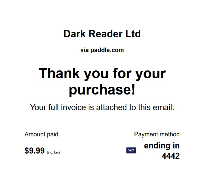 I am concerned that you paid for this - do you have a link to the page where you installed Dark Reader from with payment?