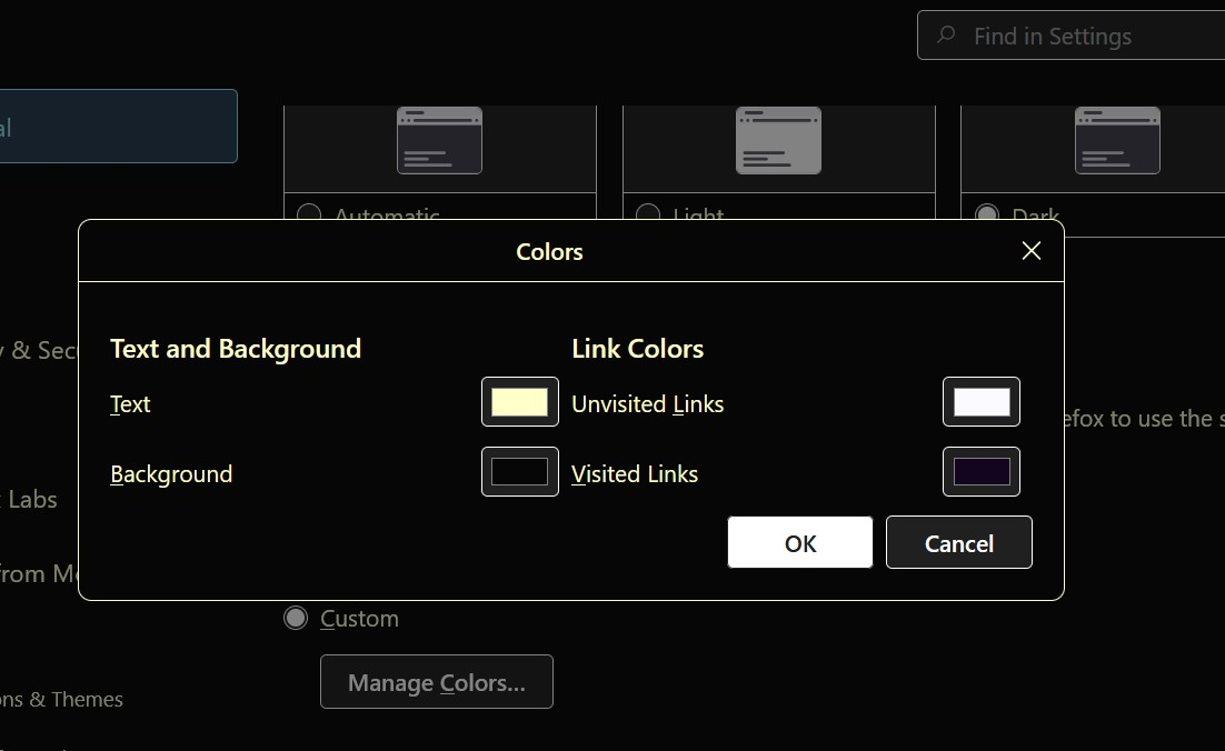 He sent me a "key" but his instructions on how to use the "key" didn't work for firefox even though he said it did.WHERE CAN I INSERT THAT KEY TO UNBLOCK ALL THE DARK MODES INCLUDING THE ACCESSIBILITY DARK THEME FOR THOSE WITH VISION PROBLEMS IN W11! I PAID FOR THAT"KEY" BUT i CAN'T USE IT & HE HAS BLOCKED ALL DARK THEMES! The only reason I can type a responce is because I'm a touch typist, I NEED HIM TO UNBLOCK DARK THEMES, ALL OF THEM!!!
